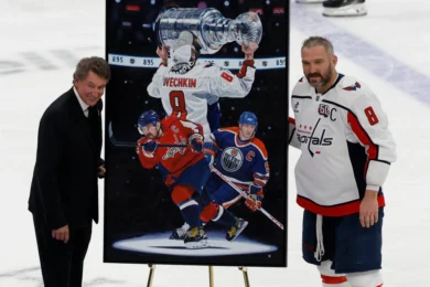 “We’re here today to celebrate this guy here, number eight. I can tell you firsthand I know how hard it is to get 894. Eight-ninety-five is pretty special,” Gretzky said. “They say records are made to be broken, but I’m not sure who’s going to get more goals than that.”