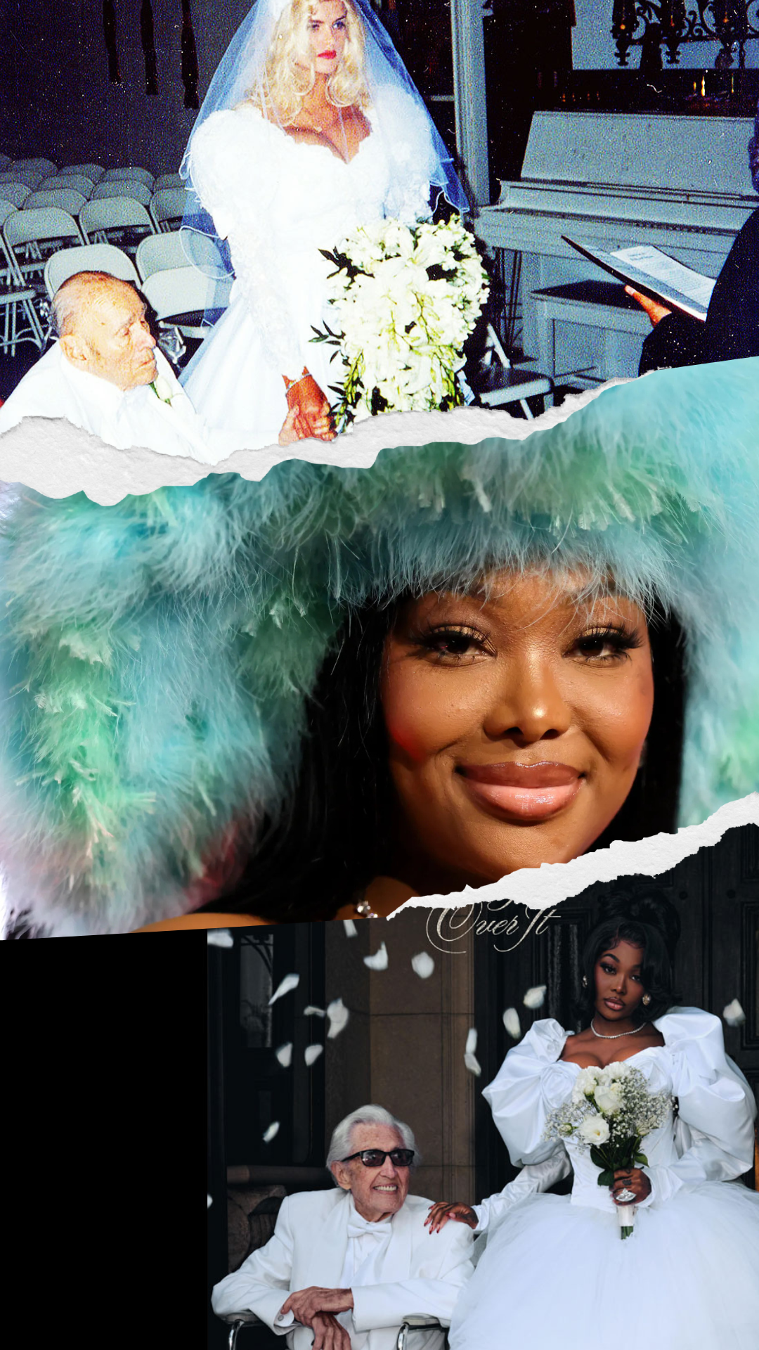 The photo features Summer Walker dressed in a full wedding gown, standing beside an older gentleman in a suit. That pairing is not accidental: the imagery intentionally evokes the infamous 1994 wedding photo of Anna Nicole Smith (then 26) and her 89-year-old husband, J. Howard Marshall II. Vibe+2Rated R&B+2