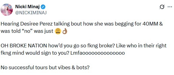 If Nicki Minaj truly decides to walk away from music, it would mark the end of a legendary chapter in hip-hop. Nicki Minaj has dominated this industry for more than a decade, breaking barriers for female rappers, and influencing an entire generation of artists. Her departure from rap would leave a massive hole, that I don’t think anyone is capable of filling. Whether it’s a genuine farewell or a moment of exhaustion, Queen Nicki knows what she’s doing, and she’ll be back on her on time, in her own terms.